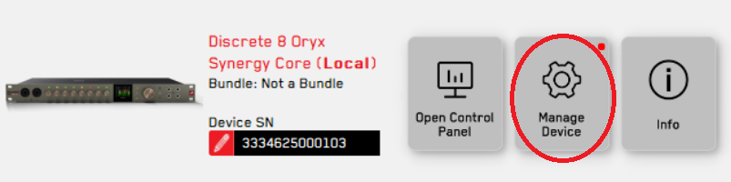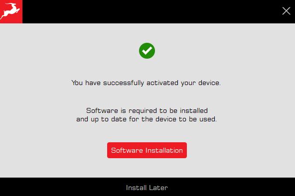 デバイスのアクティベーション完了後、「Manage Device」をクリックし、最新のソフトウェアバンドルをインストールしてください。