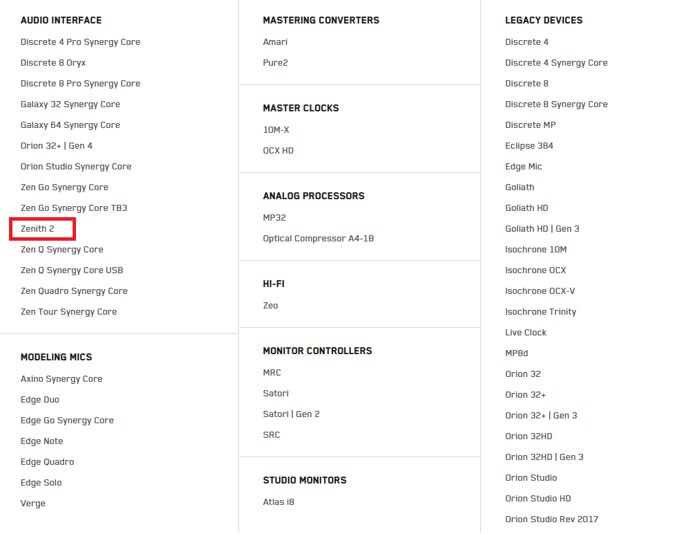 ご不明点がございましたら、Antelope Audioカスタマーサポートページへアクセスし、対象製品を選択のうえ必要な情報をご確認ください。
