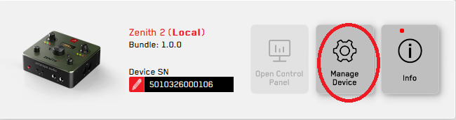 デバイスのアクティベーション完了後、「Manage Device」をクリックし、最新のソフトウェアバンドルをインストールしてください。